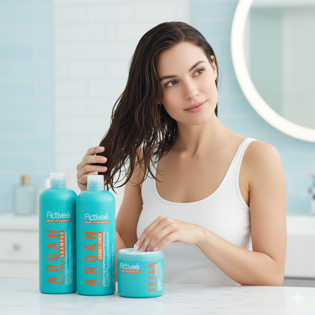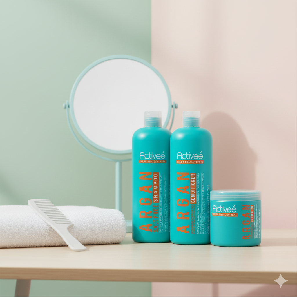 Nutrición y reparación profunda para cabellos secos o dañados. Incluye shampoo sin sal, acondicionador y mascarilla con aceite de argán. Controla el frizz, aporta brillo y suavidad. Ideal para mantener alisados y keratinas